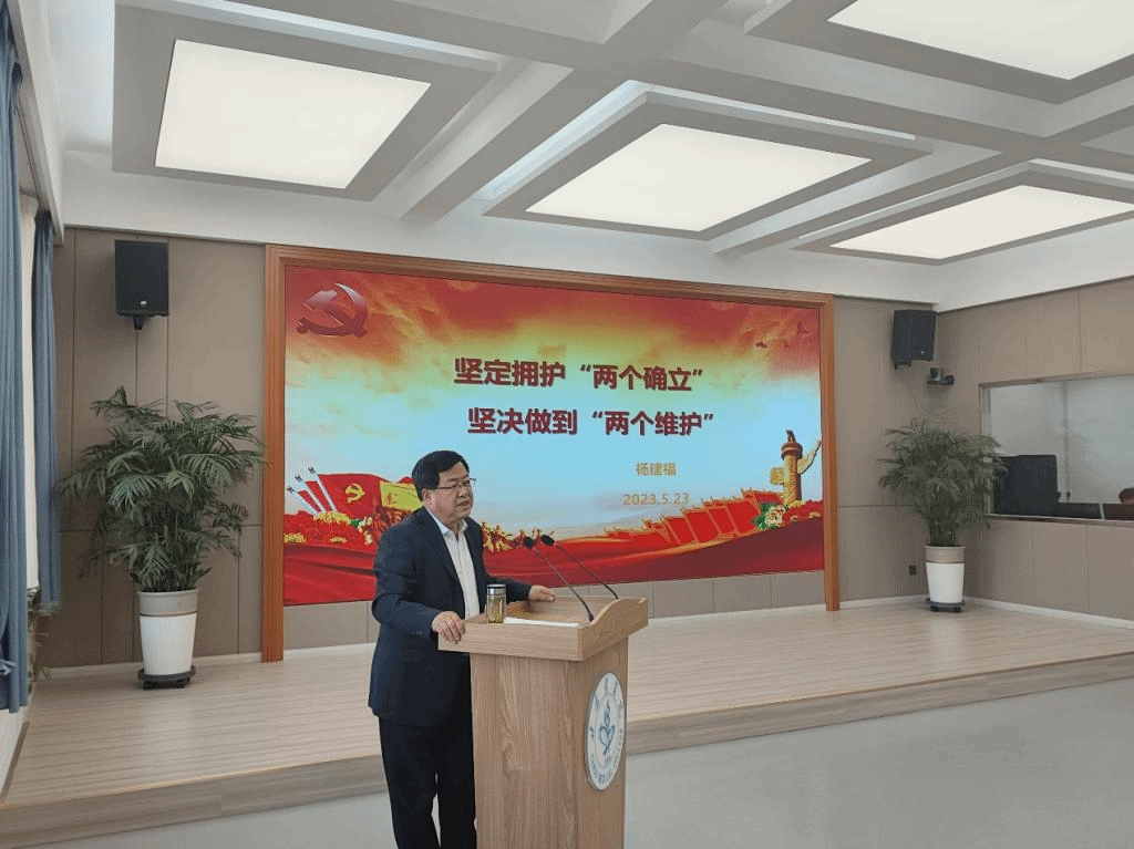 杨建福同志以《坚定拥护“两个确立” 坚决做到“两个维护”》为题,紧密联系习近平新时代中国特色社会主义思想,分别从“两个确立”的基本内涵和重大意义、“两个维护”的基本内涵和基本依据、如何增强“四个意识”,做到“两个维护”以及做好主题教育,助推学院发展四个方面深入剖析,党课观点鲜明、内容丰富,具有很强的思想性、指导性和针对性。