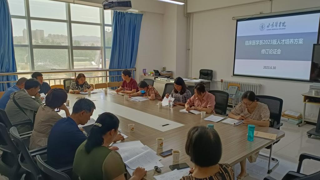 为更好地规范人才培养过程、创新人才培养模式、提高人才培养质量、实现人才培养目标,按照《甘肃医学院2023版本科各专业人才培养方案制(修)订指导意见》要求,6月30日下午,临床医学系在2号实验楼A211室组织召开2023版临床医学专业、儿科学专业、两年制临床医学专升本专业人才培养方案修订工作讨论会,会议由临床医学专业负责人李蕾主持,并邀请了附属医院外科主任姚天才、儿科主任连喜院参会并指导工作,基础医学院有关课程负责人、临床医学系教务科长、各教研室主任参加了会议。