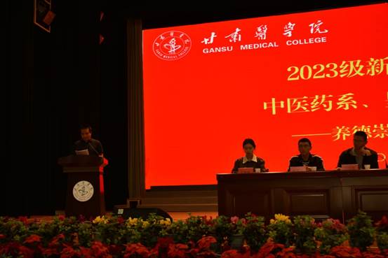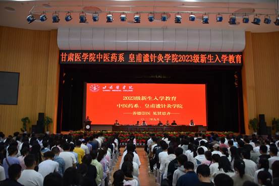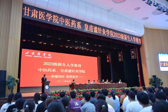 2023年9月10日上午,甘肃医学院中医药系、皇甫谧针灸学院在学校体育馆隆重举行2023级新生入学教育。入学教育是大学生进入大学的“第一课”,是大学生涯的起点和基石,是保障人才培养质量的基础环节,也是加强思想政治教育的重要途径。这次大会旨在引导甘肃医学院中医药系、皇甫谧针灸学院的全体新生顺利适应大学生活、快速完成角色转变、科学规划大学生涯,为学生全面成长成才打下了坚实的基石。