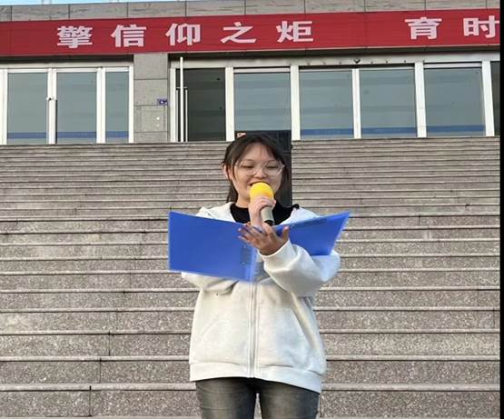 由鲁倩雯同学以《勿忘国耻,振兴中华》为主题进行了演讲,她义愤填膺地控诉日本侵略者的罪行,慷慨激昂地赞美新时代的发展,深情展望未来祖国的腾飞。慷慨激昂、满腔热血的演讲,将青春的蓬勃朝气展现得淋漓尽致。把在场师生带回了那个血与火交织的年代,在场的领导、老师、同学们都深受感染。