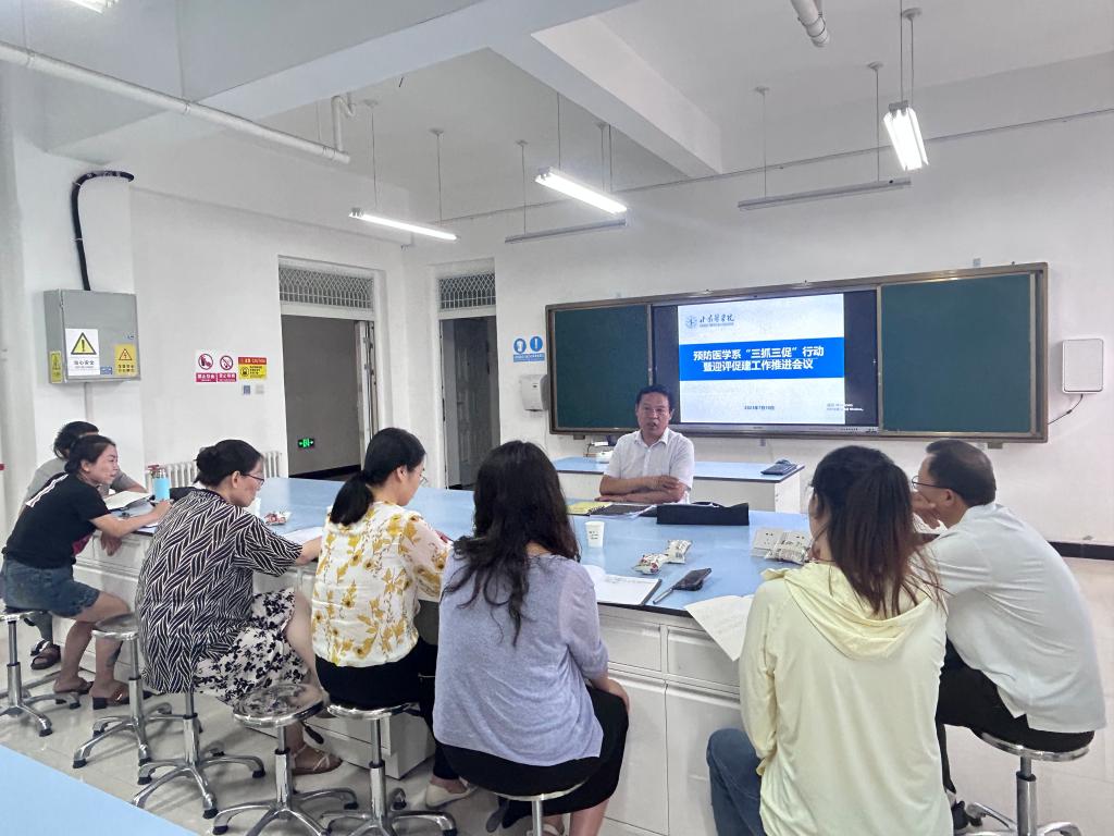 7月18日下午,预防医学系组织召开“三抓三促”行动暨迎评促建工作推进会议,会议由预防医学系主任练成同志主持,预防医学系全体教师参加。