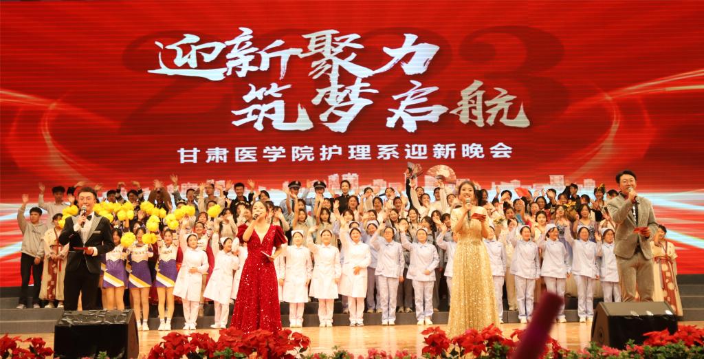 又是一年秋风送爽时,又是一次齐聚欢腾日。在这金秋十月里,我们齐聚甘医,共迎2023级护理系新生。为推进校园文艺活动的蓬勃发展,营造浓厚的校园艺术文化氛围,为同学们提供展示自我风采的舞台。10月29日晚上19:30,护理系在体育馆举办2023年“聚力迎新,逐梦启航”迎新晚会。护理系党总支书记朱天荣、系主任孔玉涛、办公室主任刘磊、学生科副科长周薇、各学院嘉宾、全体班主任、辅导员、2023级全体新生及2021、2022级部分学生共享精彩绝伦的视听盛宴。