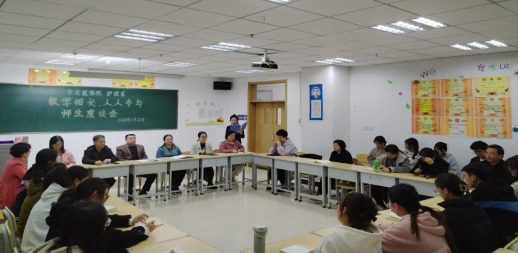 为深入贯彻习近平新时代中国特色社会主义思想,搭建师生之间的沟通平台,加强学风建设的针对性与实效性,营造时不我待、奋发向上的学习氛围,护理系于2023年11月22日晚19:00在2号教学楼B座8小教举行了“教学相长,人人参与”师生座谈会。参加本次座谈会的有护理系党总支书记朱天荣、护理系主任孔玉涛、教务科副科长段朝艳、兄弟院系教务科科长、教学负责人员以及护理系各班学习委员。