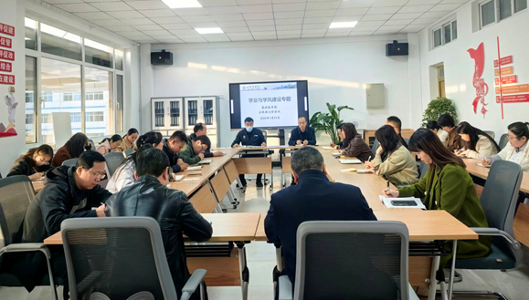 雷世鑫副院长传达了学校有关会议精神,他指出,学风是大学精神的集中体现,是教书育人的本质要求,是立校之本,发展之魂。在学校高质量、快速发展的背景下,要深刻认识加强学风建设的重要性和紧迫性,牢固树立抓学风建设就是抓教育质量,抓学风建设就是抓学校发展的意识,高度重视学院学风、班风建设,统一思想、齐心协力,全面打牢学生学业基础。尤其要深层思考分析学生培养方面的诸多问题,找出根源,逐一解决。目前部分学生的专业素养还比较欠缺,职业的认同感有待提高,学习的目的性、计划性、主动性还不够,班主任、辅导员要多关注和关心,经常性与相关学生谈心谈话,了解其生活困难与学习困惑,有针对性地做好引导和帮扶。要加强学科竞赛、学生活动的策划与指导,活动不在多而在于精,力戒形式主义,切实发挥对学生学业的促进作用。班主任中大部分老师在教学一线,不但要讲好课、管好人,更要通过课程思政增强教学的吸引力、感染力,打造有效、高效课堂。辅导员要深度融入到学生的管理、服务中去,多进宿舍、课堂,多与任课老师沟通、交流,深入了解、掌握学生的真实情况,将更有利于指导自己的实际工作,更有利于不同个体间工作的针对性和有效性。最后,希望学院全体管理人员进一步提高对学生工作重要性的认识,牢记各自职责,聚焦人才培养中心任务,加强教学管理和学生管理的联动,戮力同心,真抓实干,助力学院各项工作高质量发展。