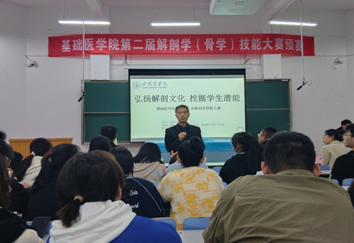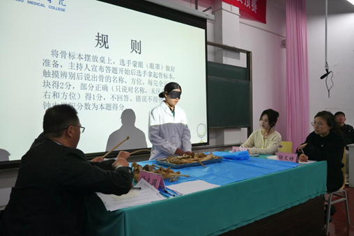 为充分调动学生学习人体解剖学的积极性,督促学生重视对解剖学实验标本的学习和观察,对后续专业课程的学习打下良好的人体形态学基础,培养学生创新能力、自主学习能力和实际动手能力, 达到以赛促教、以赛促学、以赛育人的目的。10月21号,基础医学院举办第二届人体解剖(骨学)技能大赛(预赛),比赛在一号教学楼第二、四大教室分两个赛场进行。