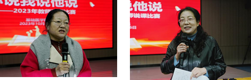 本次说课比赛全体教师参与,通过现场抽签方式,每个教研室随机抽取 1 名教师进行说课,共有11名教师从说教材、说教法与学法、说教学过程、及课后反思对方面进行说课。