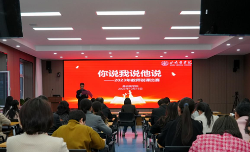 “说课”是教师钻研教材,探讨教学方法,实践教学手段,不断提高教育、教学水平的—种好方法,根据《基础医学院教学质量提升月活动实施方案》安排,为检验和巩固活动效果,契合人才培养目标,加强教学实践研究,优化教学过程,提升教育教学和本科人才培养质量,2023年10月16日基础医学院举办了“你说我说他说”教师说课比赛。