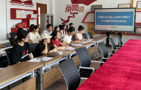 5月27日下午,甘肃医学院护理系2024版本科人才培养计划修订研讨会(毕业生代表专场会议)在护理系的党团活动室召开。护理系党政负责人、护理学、助产学专业负责人、2024届护理专业、助产专业毕业生代表20余人参加会议。