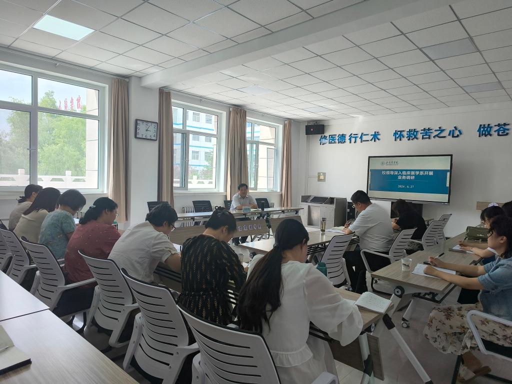 为了进一步加强作风建设,增强凝聚力,提升工作效能思路和举措,6月27日下午,学校党委委员、纪委书记杨建福同志深入临床医学系调研指导工作,会议由临床医学系党总支书记李宝成主持,临床医学系主任李蕾、临床医学系行政人员、教研室主任参加了调研座谈会。