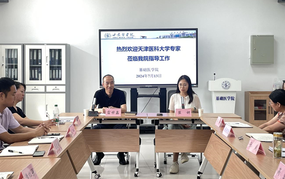 为进一步提升教师的人才培养能力和水平,推动学院师资队伍设,按照天津医科大学与我校教育协作集中培训班整体安排,基础医学院于2024年7月13日下午组织了教师座谈交流会。邀请了天津医科大学基础医学院崔妍副教授进行交流指导。座谈会由基础医学院副院长雷世鑫教授主持。
