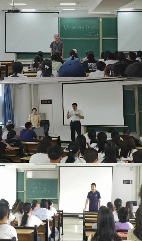 9月1日下午,基础医学院副院长雷世鑫、李红恩及学生科负责人分别与新入职辅导员召开新生第一次班会,向新同学介绍了学校、学院发展历程及学科、专业建设等情况,要求2024级新生要持续学习习近平新时代中国特色社会主义思想,坚定理想信念,系好人生第一粒扣子,坚定不移听党话、跟党走,争做有理想、敢担当、能吃苦、肯奋斗的新时代好青年,在推进强国建设、民族复兴伟业中展现青春作为、彰显青春风采、贡献青春力量,奋力书写为中国式现代化挺膺担当的青春篇章;要秉承“养德崇医、见贤思齐”的校训,传承“艰苦创业、无私奉献”的甘医精神,锤炼高尚医德,学好专业知识,练就过硬技能,走好职业生涯的第一步;要严格自律,遵守法纪,筑牢安全防线,提高识诈、防诈、反诈意识和能力;要养成良好习惯,倡导同学们走下网络、走出宿舍、走向操场、走进图书馆,全面成长进步。