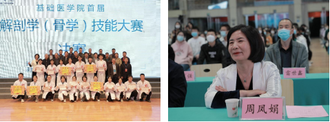 点评过后,基础医学院党总支书记周凤娟教授宣布了比赛成绩及获奖名单,2021级本科临床六班逆风翻盘,斩获本次决赛的团体一等奖,本科临床二班、临床九班分别获得团体二等奖,本科临床七班、儿科一班、儿科二班分别获得团体三等奖。活动最后,出席本场比赛的领导们为获奖选手颁发了奖状及荣誉证书,所有参赛选手、工作人员和领导嘉宾们合影留念。