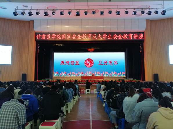 为贯彻落实坚持总体国家安全观,着力防范化解重大风险,庆祝中华人民共和国成立70周年,增强我系学生的安全防范意识,提高自我保护能力,创建平安校园,我系于2019年4月28日下午组织全体师生在甘肃医学院体育馆聆听关于国家安全及大学生安全教育讲座。本次讲座主讲人是甘肃医学院马克思主义学院教师、西北师大在读博士于晓冬老师,平凉市崆峒区公安局吕警官。