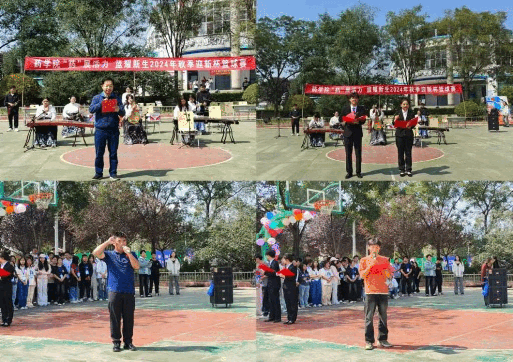 为了欢迎新生,增强同学间友谊,提升团队协作能力,全面提升我院学生的身体素质和团队协作能力,营造积极进取,运动拼搏的校园文化氛围,药学院于2024年9月24日隆重举行“药展活力,篮耀新生”迎新杯篮球比赛开幕仪式。参加开幕式的人员有药学院院长李莲英、药学院副院长戴兴德、药学院学生科科长樊敏以及药学院全体辅导员和学生。