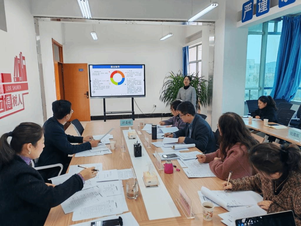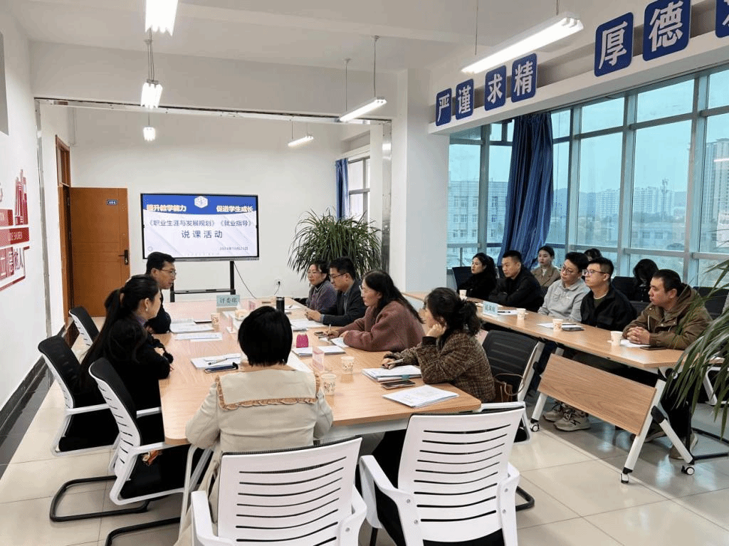 首先,主持人对说课活动进行了简要的介绍,并强调了本次活动的重要性和意义。随后,各位教师利用PPT对承担课程及其教案讲授内容从说教材、说教法、说学法、说教学过程、说教学反思等方面依次进行说课。活动中,老师们充分展示了自己的教学创新思维,能够深入剖析学情、教材、培养目标等内容,结合不同专业为学生提出具体的职业规划和就业方向。部分教师更是结合自己的工作经验、带班经验及相关培训成果,探索能够激发学生兴趣的教学模式和课堂互动,通过小组合作、模拟演练、观看视频、趣味测试等方式提高学生的课堂参与度和就业创业的实践能力。