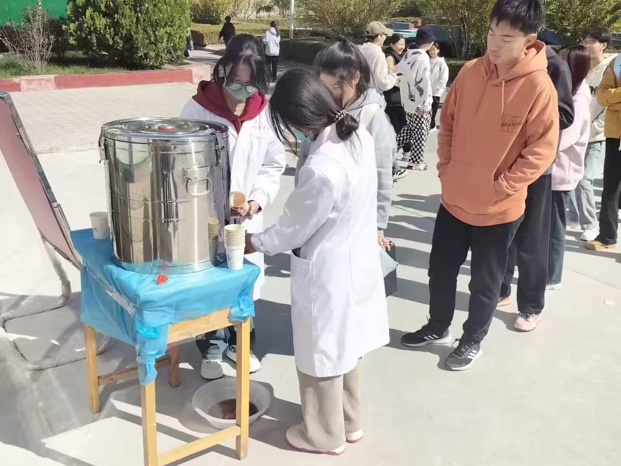 为切实加强秋冬季流感预防,发挥医学院校特色优势,结合以往工作经验,根据学校安排部署,皇甫谧学院在10月23日至29日,面向全体师生员工,在校医务室和学生二号餐厅门前,开展为期一周的岐黄避瘟汤剂免费发放活动。