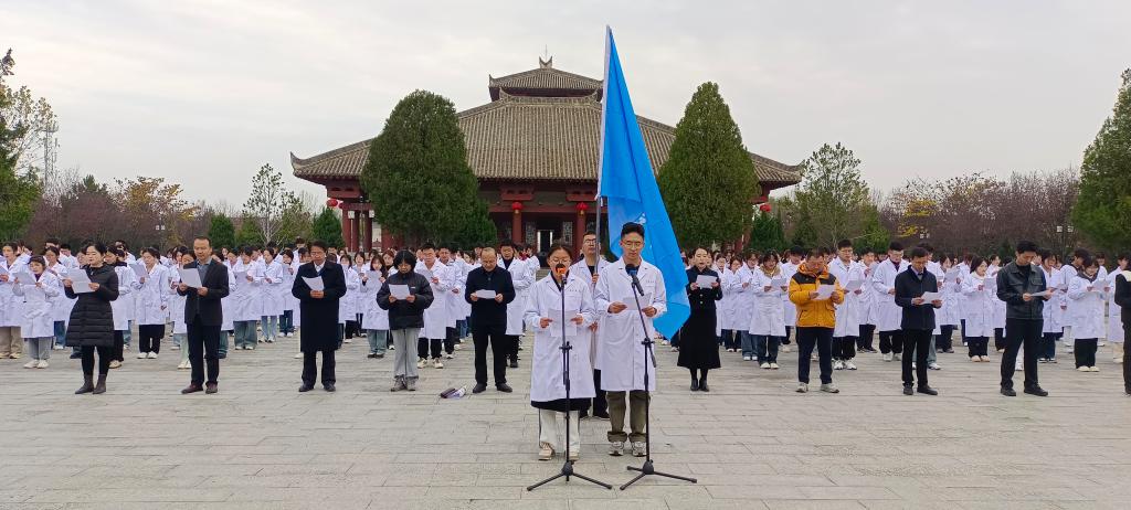 文化园内,气氛庄重而肃穆。“时甘肃医学院师生,隆重聚集于灵台县皇甫谧文化园,恭谒祖陵,以庄严神圣之心,……”刘君奇院长深情的朗读了祭文,表达了对针灸鼻祖皇甫谧的景仰与尊崇。