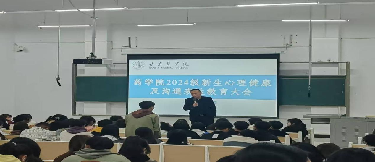为提升2024级学生心理健康意识及沟通表达能力,增强自我调适能力,2024年10月22日,药学院举办了以“关注心理健康,学会沟通表达”为主题的大学生心理健康知识讲座,讲座由药学院心理专干曹馨阳老师和药事管理教研室主任李宏老师主讲。