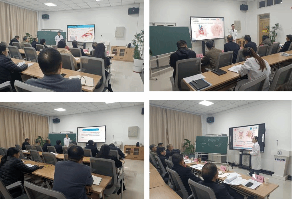 为进一步加强青年教师培养,营造良好的教学氛围, 2024年11月12日下午,基础医学院在科技楼308会议室举行了2024年新进教师试讲活动。试讲活动由李红恩副院长主持,王恒、杨培、巩慧敏、郑兰兰共4位专任教师参加本次试讲活动,活动特别邀请了潘润存教授、周凤娟教授、石爱民教授、田金玉教授等教学经验丰富的老教师担任评委,基础医学院全体无课教师共同参与。