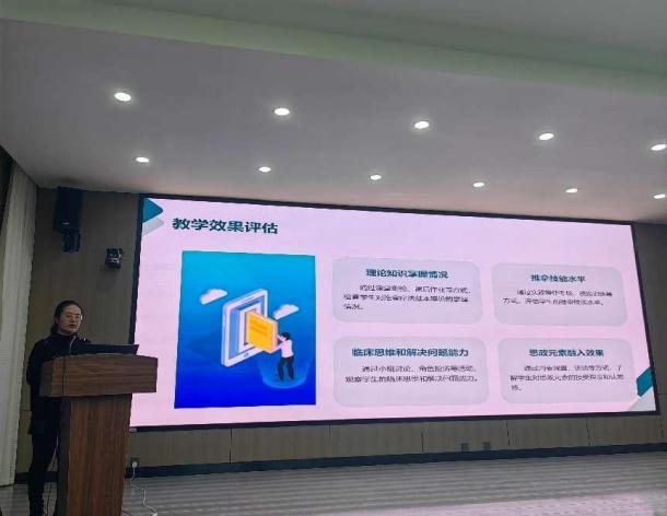 本次大赛五位评委是皇甫谧学院马献中教授和李莲英教授、基础医学院田金玉教授、教务处质控科负责人路彬副教授、药学院樊敏副教授。他们分别从教学方法创新、课程思政融入、现场表现、材料准备等方面对参赛团队进行了全面、客观、细致的点评。他们表示,四个团队均展现出了较高的教学水平,体现了皇甫谧学院教师的专业素养和教学能力。同时,评委们也指出了各团队在教学创新过程中的优点和不足,为参赛团队带来了丰富的教学创新启示。