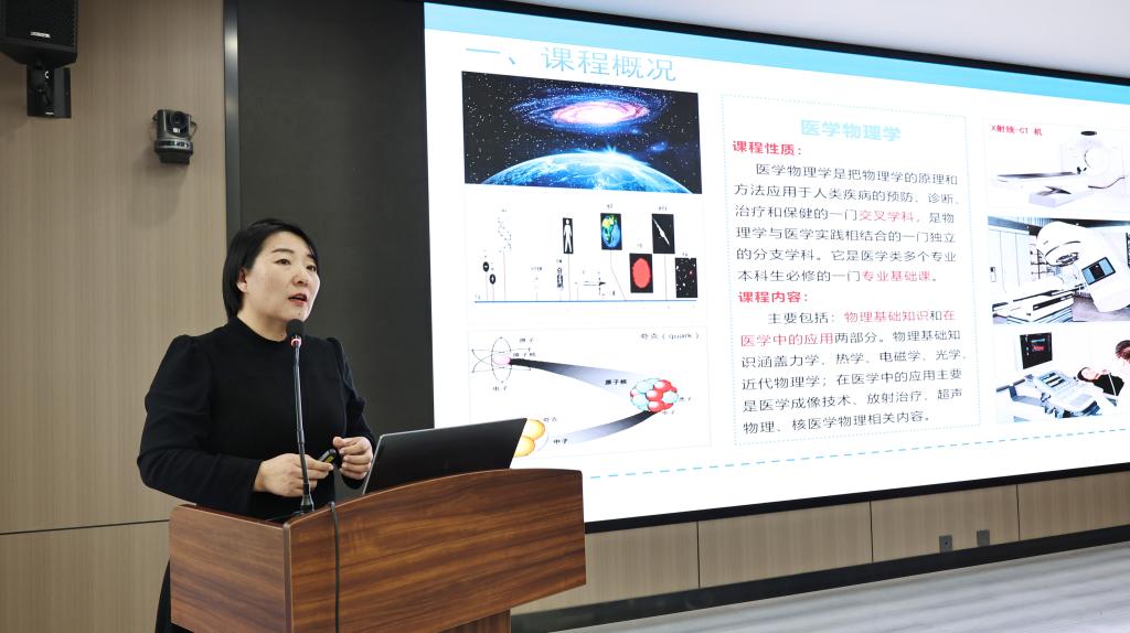 公课部副部长徐婕致辞。继续教育学院院长李超,基础医学院病理教研室主任杨亮,教务处质控科科长路彬,公课部部长黄砚,计财处处长朱天荣,公课部副部长李东禄,公课部副部长徐婕受邀担任本次大赛评委。参赛选手以及公课部全体教师到会参与活动。