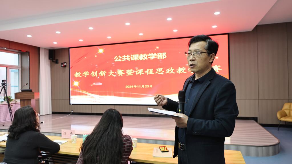 为全面贯彻二十届三中全会精神,加强新时代教师队伍建设,激发教师的教学创新热情,推进学校教学创新发展和课程思政建设,提升公课部教师的整体教学水平,11月23日下午,公课部教师教学创新大赛暨课程思政教学大赛在学校教师发展中心举行。