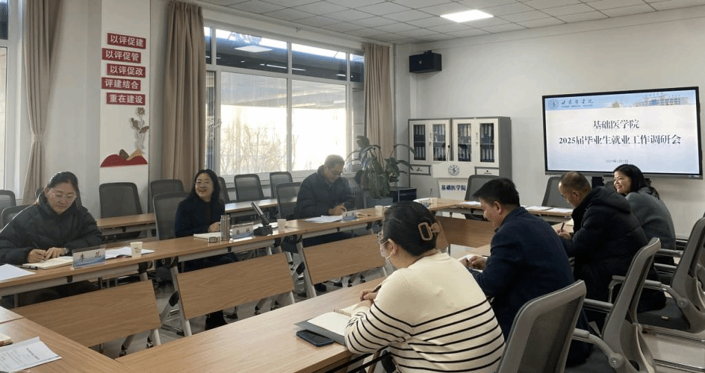为进一步推动学校就业工作,提升2025届毕业生就业质量,2025年1月2日,张艳副校长一行深入基础医学院开展调研,基础医学院党总支书记雷世鑫,副院长李红恩及基础医学院行政人员、就业专干、2025届毕业生班主任参加会议。