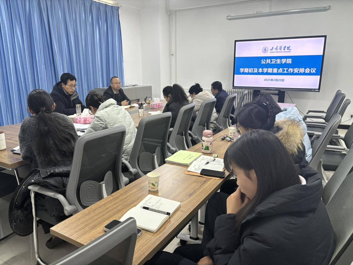 为确保新学期各项工作有序、高效开展,2025年2月20日下午,公共卫生学院组织召开了学期初及本学期重点工作安排会议。会议由院长李东禄主持,学院各教研室主任、辅导员、实验员及行政人员参加了会议。