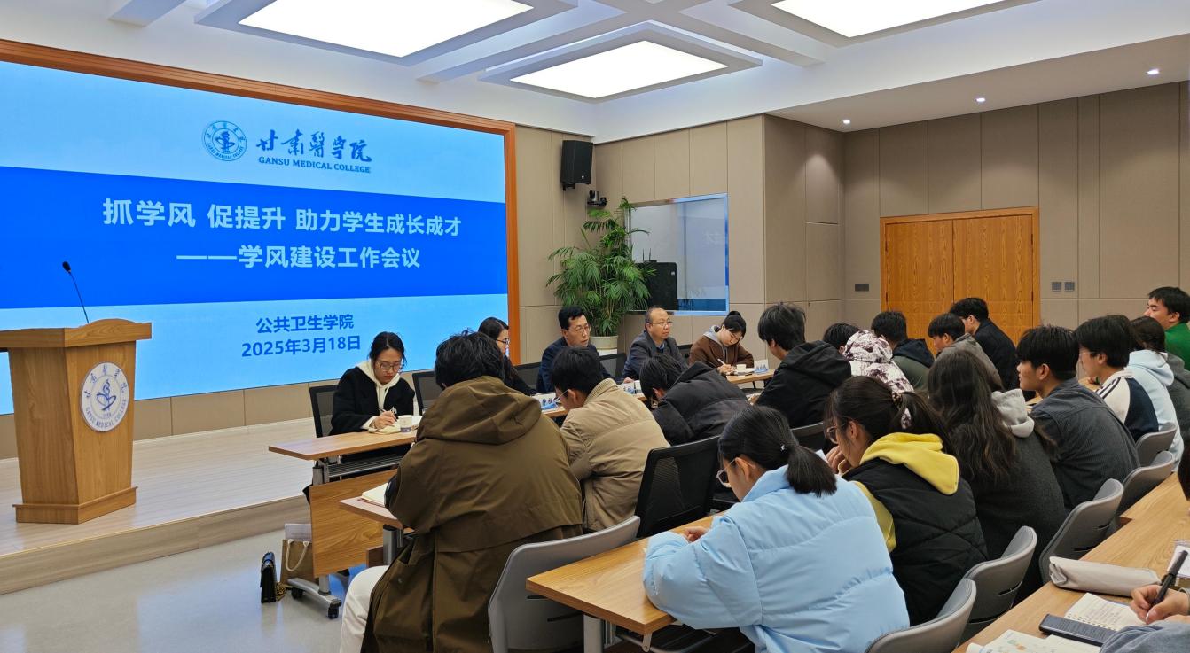 为进一步加强学院学风建设,激发学生学习的积极性和主动性,营造良好的学习氛围,公共卫生学院于2025年3月18日在路演大厅召开学风建设工作会议。会议由学院副院长蔺多鑫主持,院长李东禄、辅导员和班主任及学院全体学生参加了本次会议。
