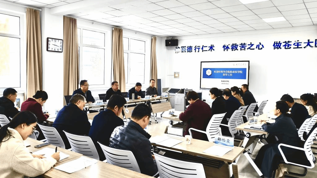调研会上,戴慧副院长从党建引领、内涵建设、师资队伍、科研能力、实践教学、学生管理等方面汇报了学院“十四五”期间取得的成效,现存突出问题,以及“十五五”临床医学院发展思路。