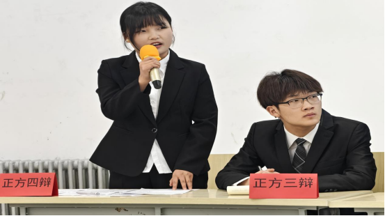 正方从医学学习的视角切入,着重指出过度依赖AI 会削弱医学生自主诊断的能力。正方二辩杨珂馨同学表现尤为亮眼,她结合自身学习经历谈到,在诊断课程中,若长期依靠 AI 分析病例影像,学生对影像细节的敏锐观察力将逐渐钝化,难以构建起独立的诊断思维。其发言逻辑严谨,例证详实,赢得了现场阵阵掌声。
