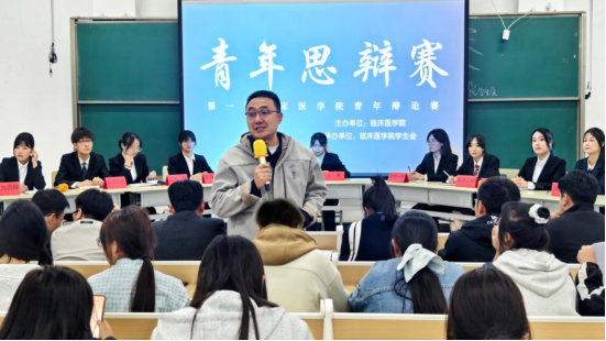 为培养学生的思维能力、语言表达能力和团队协作精神,丰富知识储备,营造校园文化氛围。2025 年 4月 8日晚 7 时,临床医学院在一号教学楼第二大教室,举办了一场以 “AI 的普及是否阻碍个人进步” 为主题的精彩辩论赛,现场吸引了近 300 名师生前来观赛。