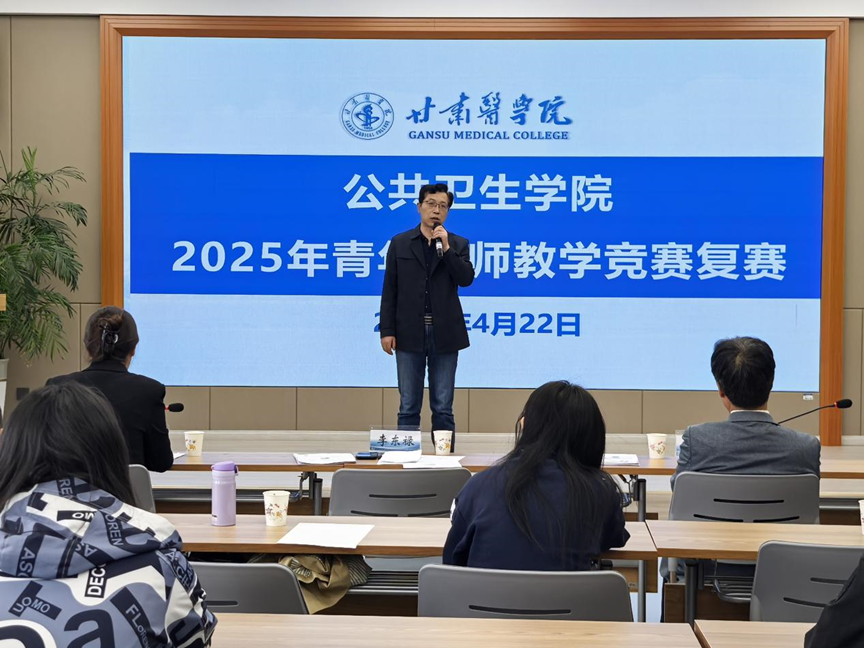 大赛邀请到了甘肃医学院原计划财务处处长、医学免疫学教授潘润存;甘肃医学院基础医学院党总支书记、病原生物学教授雷世鑫;甘肃医学院临床医学院副院长、内科学教授戴慧;甘肃医学院公共卫生学院院长、人体解剖学副教授李东禄;甘肃医学院公共卫生学院党支部书记、副院长、计算机学副教蔺多鑫五位专家作为评委,3位符合参赛条件的青年教师同台竞技,以扎实的专业素养、生动的课堂呈现,展现了公共卫生学院青年教师的风采与担当。