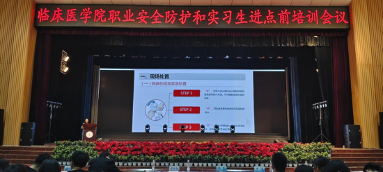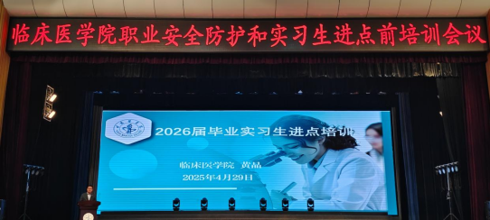 为让同学们更快地适应临床实践环境,强化职业安全意识,规范实习管理流程,临床医学院于4月29日在学校体育馆举行了2026届毕业生实习前教育培训会议。临床医学院领导、相关科室负责人、班主任、辅导员及全体实习生参加会议。