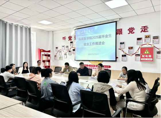 为深入贯彻落实党中央、国务院关于高校毕业生就业工作的决策部署,进一步推动学院就业工作提质增效,5月6日,临床医学院召开2025届毕业班就业工作推进会。会议围绕当前就业形势分析、班级就业进展汇报、规培考试与执业医师备考指导、家校联动促就业等议题展开深入研讨,并对下一阶段就业工作进行再动员、再部署。学院领导、各班主任及就业工作相关负责人参加会议。
