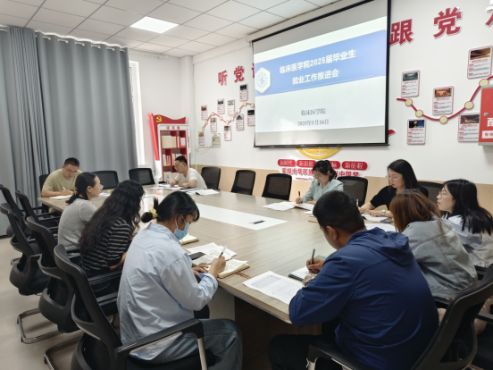 为深入贯彻落实学校关于毕业生就业工作的部署要求,进一步推动2025届毕业生高质量就业。5月16日,临床医学院召开就业工作推进会,传达学校5月13日就业推进会精神,并安排部署下一阶段重点工作。学院领导、各班主任及就业工作相关负责人参加会议。