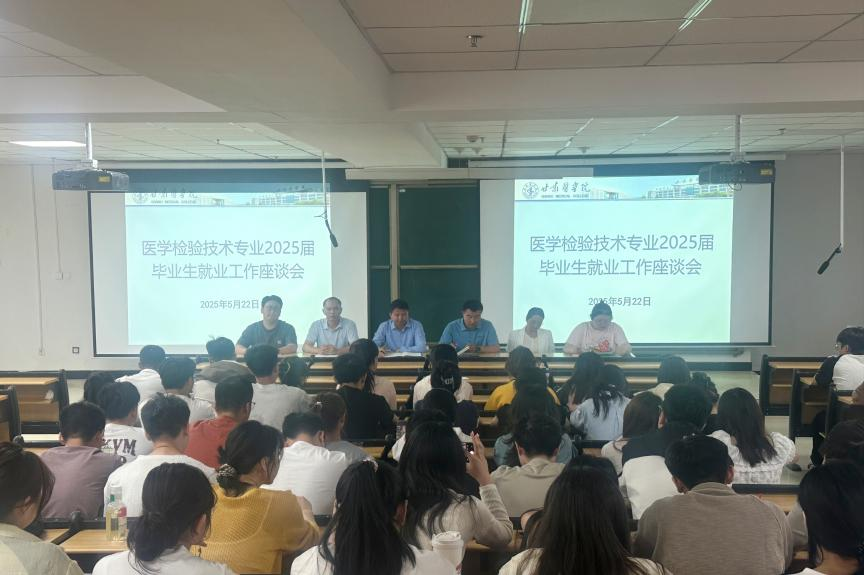 为深入贯彻党中央、国务院关于高校毕业生就业工作的决策部属,扎实推动医学检验技术专业2025届毕业生就业工作提质增效,5月21日晚,基础医学院召开了医学检验技术专业2025届毕业生座谈会,围绕就业形势、职业规划等议题与同学们展开了深入交流。会议由学生科负责人主持,基础医学院副院长李红恩、毕业班班主任及就业、征兵专干参加会议。