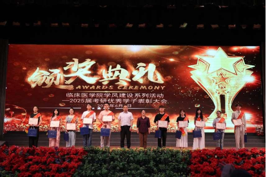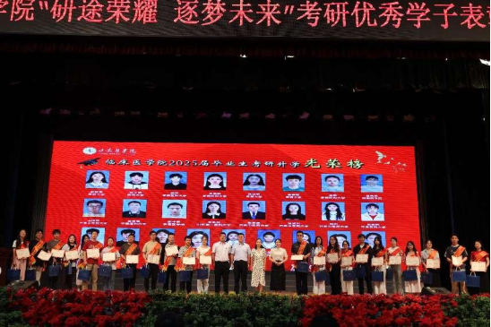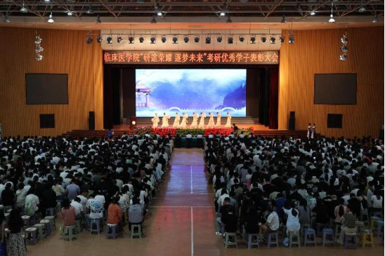 2025年6月9日晚,甘肃医学院临床医学院在体育馆隆重举行学风建设系列活动之2025届考研优秀学子表彰大会。学校党委委员副校长刘凯、学校党委委员副校长张艳及相关部门负责人出席。临床医学院党政负责同志、各科室科长、各教研室主任、班主任、辅导员以及在校学生和附属医院实习的21级学生共计1100余人齐聚一堂,共同见证这一盛事。