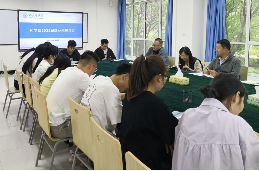 为深入了解2025届毕业生在校期间教育教学、人才培养、生产实习、毕业论文等方面的实际情况,加强学院与毕业生之间的沟通交流,提升药学院人才培养质量和日常管理水平,2025年6月6日药学院召开了2025届毕业生代表座谈会。副院长董娜、戴兴德,学生科科长樊敏和毕业班班主任辅导员及毕业生代表参加会议,会议由教务科科长武喜红主持。