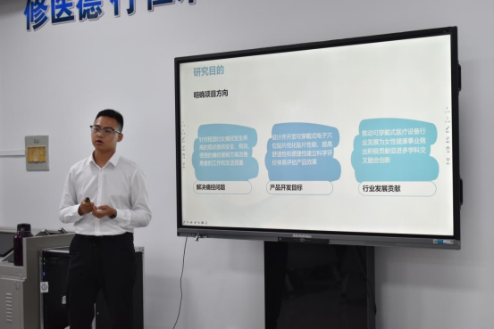 下午七点整,答辩会正式拉开帷幕。各团队通过5分钟项目陈述与3分钟评委问答,全方位展示项目的核心价值与落地潜力。现场气氛热烈,既有“可穿戴式痛经缓解电子穴位贴片”的技术突破,也有“谧境奇旅-皇甫文创集”的文化创新。