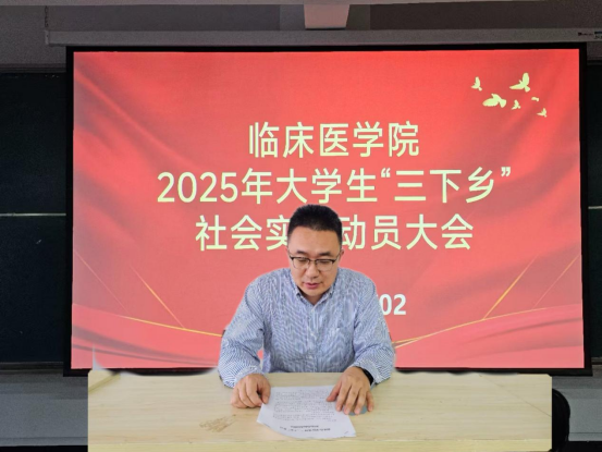 会上,临床医学院团总支书记李沛老师作动员讲话。他强调,三下乡是青年学子服务基层、锤炼本领的重要平台,希望同学们以“医者仁心”践行责任担当,将专业知识与社会实践紧密结合。随后,学生科张健老师详细解读了活动实施方案,从行程安排、安全规范到服务内容逐一说明,为实践开展明确方向。