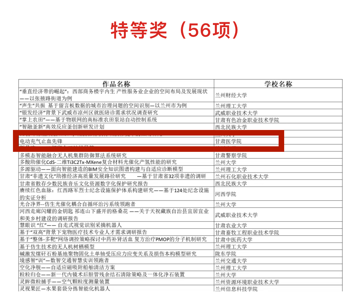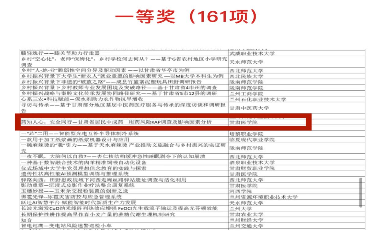 第十五届“挑战杯”甘肃省大学生课外学术科技作品竞赛终审决赛落下帷幕,公共卫生学院学子凭借扎实的专业知识与创新探索精神,在省级决赛中表现亮眼。省赛中,获特等奖1项,一等奖1项,二等奖2项,展现我院学风建设成果。
