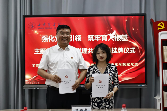 2025年7月11日下午,甘肃中医药大学与甘肃医学院临床医学院在临床医学院党团活动室联合举办“强化党建引领 筑牢育人根基”主题党日活动暨结对共建基地挂牌仪式。会议由临床医学院党总支书记李宝成同志主持,甘肃中医药大学党委常委、副校长闫述乾以普通党员身份参加主题党日活动,参加活动的还有甘肃中医药大学党委学生工作部部长、学生工作处处长纪凤仙,党委学生工作部副部长、学生工作处副处长江陆平,党委学生工作部副部长、学生工作处副处长许敏,党委学生工作部学生管理科副科长韩璐,甘肃医学院党委委员、副校长刘凯出席活动,临床医学院班子成员及全体党员参加活动。