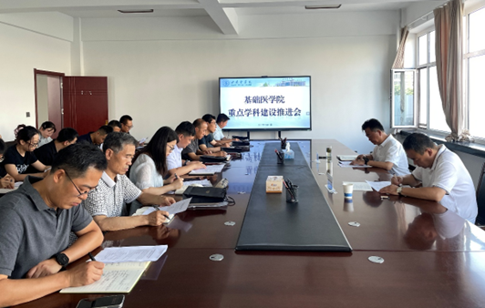 为更好地聚焦学科建设重点,明确学科建设方向,提升学科建设水平,促进学科内涵发展,7月21日,基础医学院召开重点学科建设推进会。会议由基础医学院副院长李红恩主持,学校党委书记汪永锋、副校长刘凯、教务处、招生就业处和临床医学院有关负责人、基础医学院全体行政人员及人体解剖学教研室全体教师参加会议。