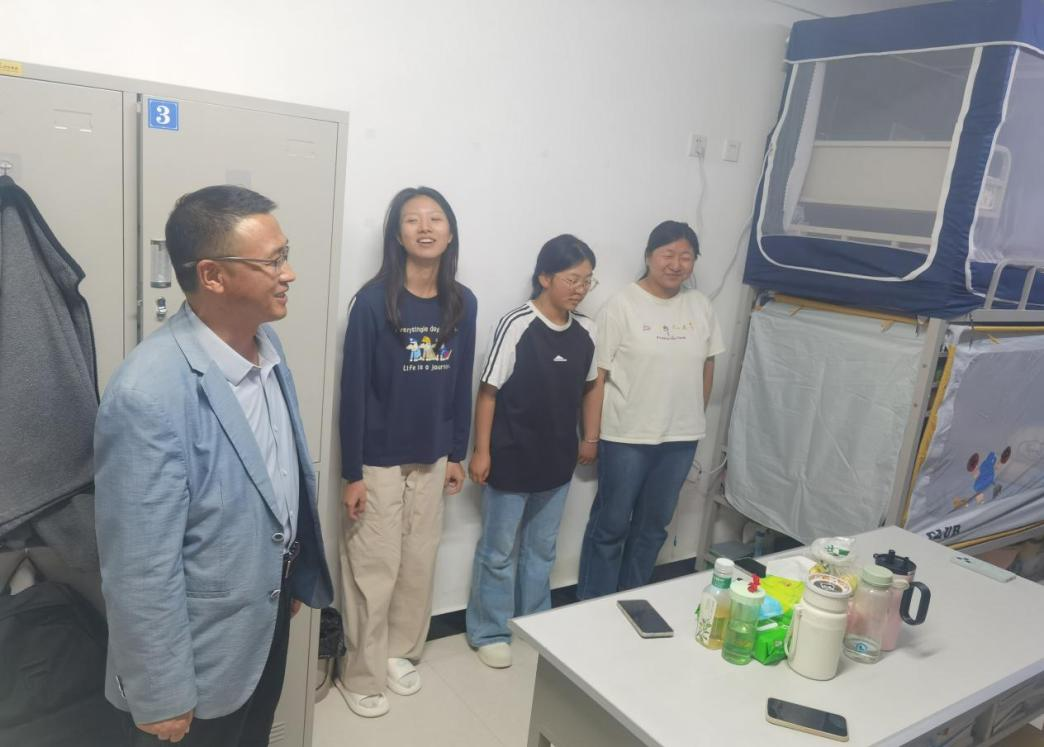 为切实掌握 2025 级新生入校后的军训及生活情况,扎实推进新学期学生管理服务工作,9月7日晚,基础医学院党总支书记雷世鑫,副院长李红恩,党总支副书记、副院长徐克国带领2025级全体班主任、辅导员,深入新生宿舍开展走访活动。