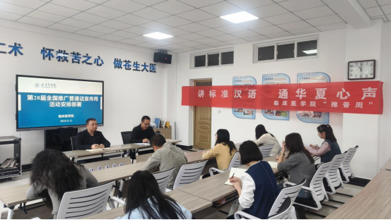 2025年9月11日上午,临床医学院召开第28届全国推广普通话宣传周活动安排部署会,统筹推进宣传周各项工作落地。