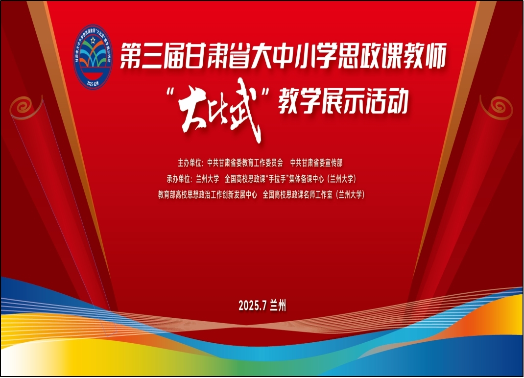 近日,由中共甘肃省委教育工作委员会、中共甘肃省委宣传部联合主办的第三届甘肃省大中小学思政课教师“大比武”教学展示活动获奖结果正式公布。我校马克思主义学院教师马双双凭借扎实的理论功底、创新的教学设计和生动的课堂呈现,在本科《思想道德与法治》课程组中脱颖而出,荣获二等奖,充分展现了我校思政课教师的专业素养和教学风采。