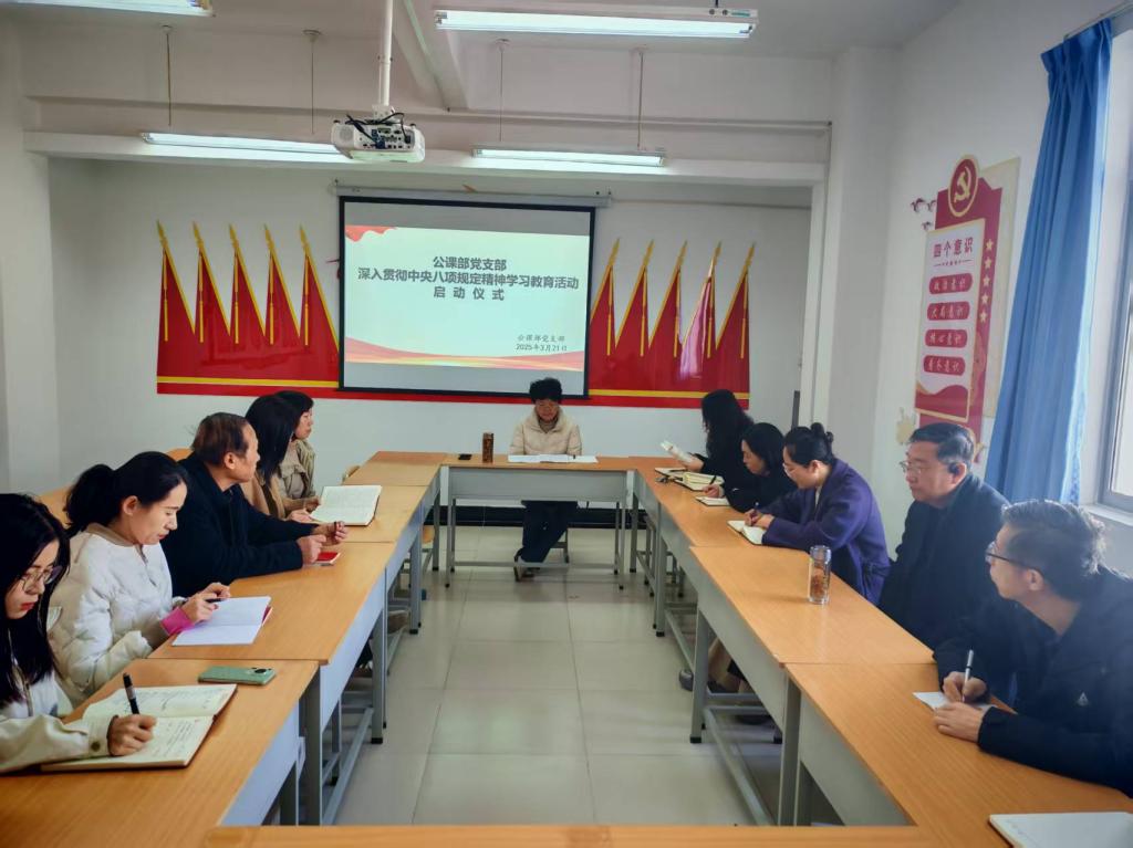 3月21日上午,公课部党支部组织开展深入贯彻中央八项规定精神学习教育启动仪式。党支部书记黄砚主持会议并传达学习中共甘肃医学院委员会办公室《关于印发甘肃医学院开展深入贯彻中央八项规定精神学习教育工作方案》的通知精神。