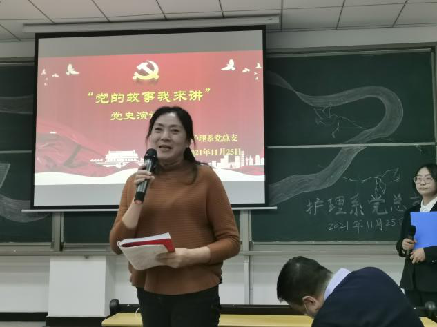 赛后,孔玉涛主任对活动进行了精彩的点评和总结,她首先肯定了本次活动举办的非常成功,非常有意义;其次她认为在全国上下开展党史学习教育和党的十九届六中全会精神之即,护理系党总支举办的这一活动不仅助推了全系师生开展党史学习教育更加往深里走、往实里走,同时也掀起了全系师生学习党史的又一次高潮;最后孔主任也以此为契机为大家讲解了历史上(11月25日)发生在今天的党史故事,号召全体同学以党史滋润、养育青春之我,以青春之我建设伟大中国。
