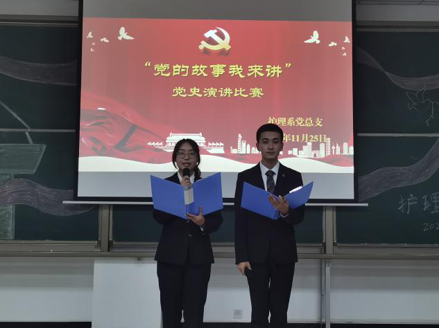 “踏上去湖北的列车,我的使命注定不再平凡”这里一群青年慷慨激昂的演讲着他们心中铭记的一位位人物、一件件事迹,让人热血沸腾。为进一步推动我系青年学子学习贯彻“学史明理、学史增信、学史崇德、学史力行”,“学党史、悟思想、办实事、开新局”党史学习教育及学习党的十九届六中全会精神走深走实,2021年11月25日护理系党总支举办了“党的故事我来讲”学党史主题演讲比赛,比赛在2号教学楼A座13大举行,护理系主任孔玉涛、护理系党总支副书记朱天荣、护理系教务科副科长段朝艳、护理系团总支书记李红强、副书记袁鹏飞出席活动,部分班主任辅导员、全体学生党员、部分入党积极分子和各班团支书参加了本次活动。